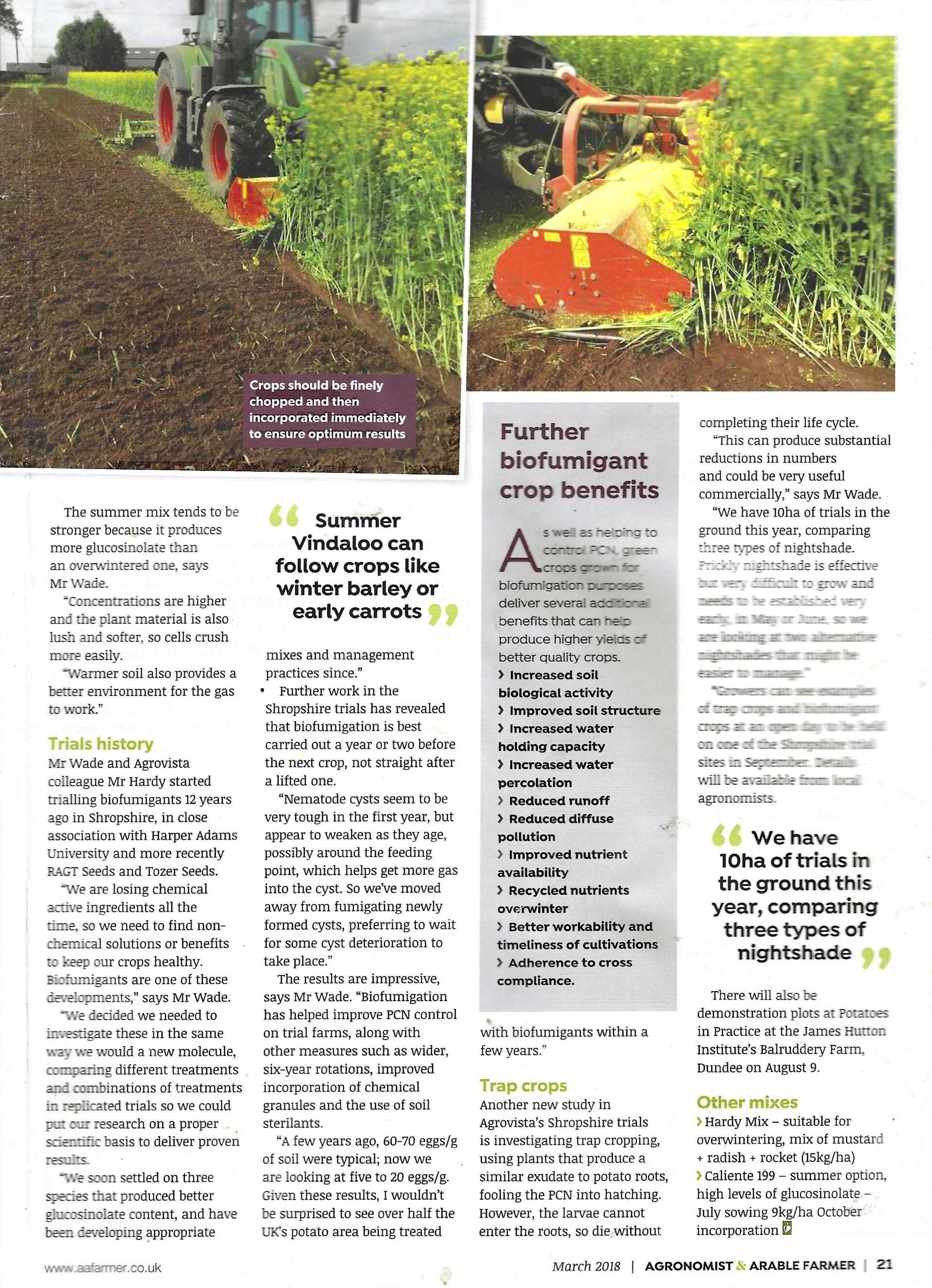 This approach means the crop can be grown between a cereal crop and potatoes without having to adjust work patterns, but the biofumigation effect may be reduced, he says.